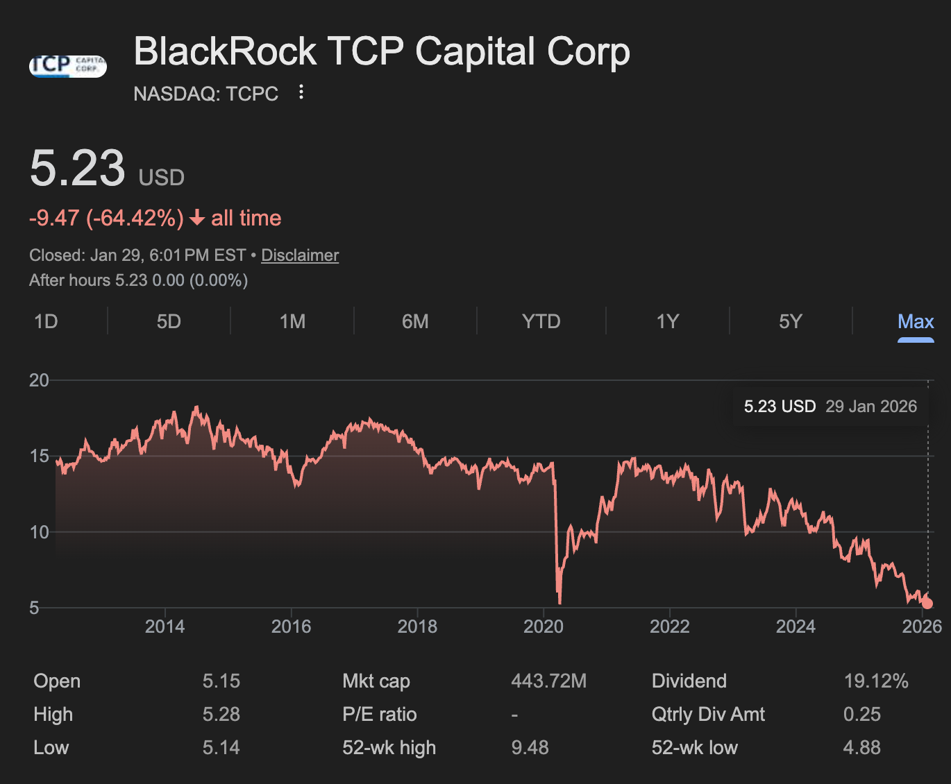 2026년 1월 23일 금요일, 장 마감 후 조용히 제출된 8-K 보고서. 주당 $8.71이던 순자산가치가 $7.05로 추락했다는 숫자. 전체 포트폴리오 149개 기업 중 단 6개가 손실의 67%를 차지했다는 설명. 표면적으로는 포트폴리오 관리의 실패, 운이 나빴던 투자의 청산처럼 보인다. 하지만 이것은 우연이 아니라 치밀하게 계산된 블랙록의 전략적 투항(Strategic Capitulation)으로 보아야 한다.